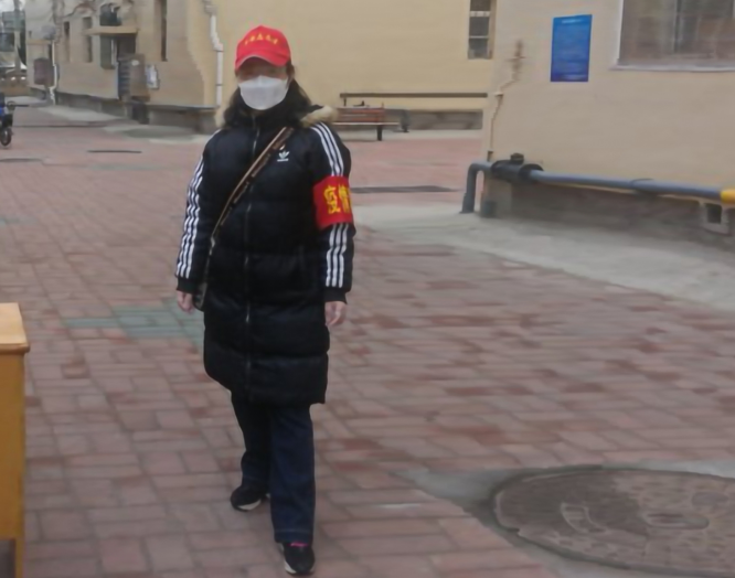 房管科科長趙海英在敦化路街道伊春路社區(qū)當(dāng)好一線志愿者,迎難而上,奉獻(xiàn)光和熱。