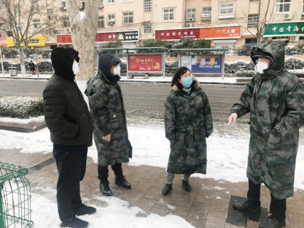 財(cái)務(wù)科高烜積極參加社區(qū)防疫一線工作。按照社區(qū)人員名單挨個(gè)撥打電話,確認(rèn)其是否外出,對(duì)外出人員詳細(xì)登記并囑咐其居家隔離14天。不畏嚴(yán)寒,堅(jiān)守小區(qū)入口,對(duì)進(jìn)入人員嚴(yán)格登記制度,發(fā)放宣傳資料,提醒佩戴口罩,主動(dòng)幫助清掃積雪,聯(lián)系社區(qū)撒融雪劑,解決居民出行問題。