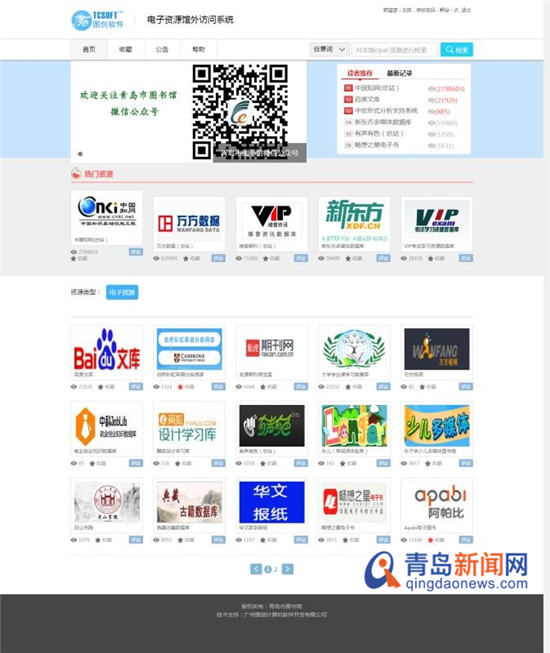 近年來(lái),青島市圖書(shū)館積極創(chuàng)新數(shù)字圖書(shū)館服務(wù)模式,率先在全省擴(kuò)大數(shù)字資源使用權(quán),將本館采購(gòu)的32個(gè)中外文數(shù)據(jù)庫(kù)向全體持證讀者免費(fèi)開(kāi)放使用,并將數(shù)字資源從“館內(nèi)使用”拓展到“持證讀者使用”,將“付費(fèi)下載”轉(zhuǎn)變?yōu)椤懊赓M(fèi)下載”,特別是本館推出的單點(diǎn)登錄遠(yuǎn)程訪問(wèn)系統(tǒng),使讀者能夠不受地域與時(shí)間限制,方便地使用數(shù)字圖書(shū)館資源。