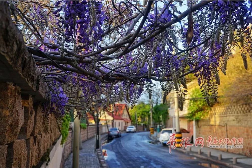 老城區(qū)是青島極具韻味的地方,尤其是到了春花盛開的季節(jié),紫藤瀑布層疊繾綣,與老城區(qū)錯(cuò)落相依,說不盡的故事與過往。