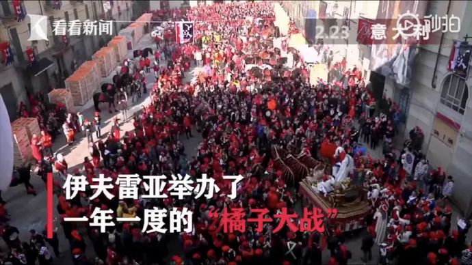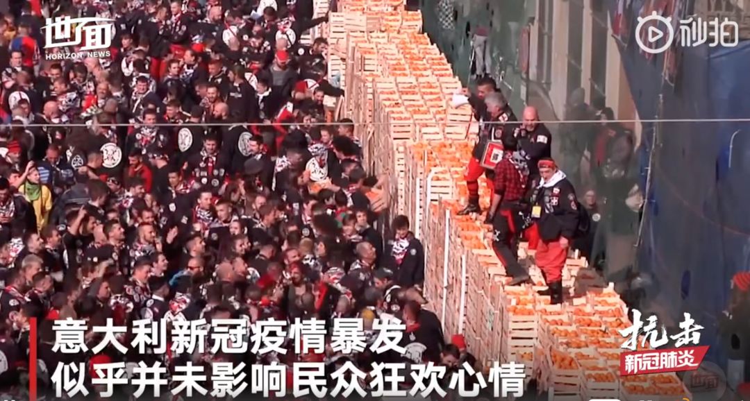 22日剛剛宣布11個城鎮(zhèn)封城,可是就在第二天,與米蘭相距僅百余公里伊夫雷亞,卻開始了新的狂歡。