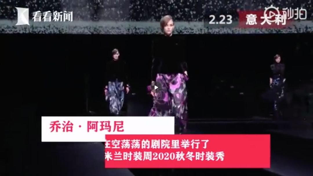 2月23日,阿瑪尼的秋冬時裝秀在空蕩蕩的劇院舉行,沒有邀請任何媒體和買家,全程“云直播”。