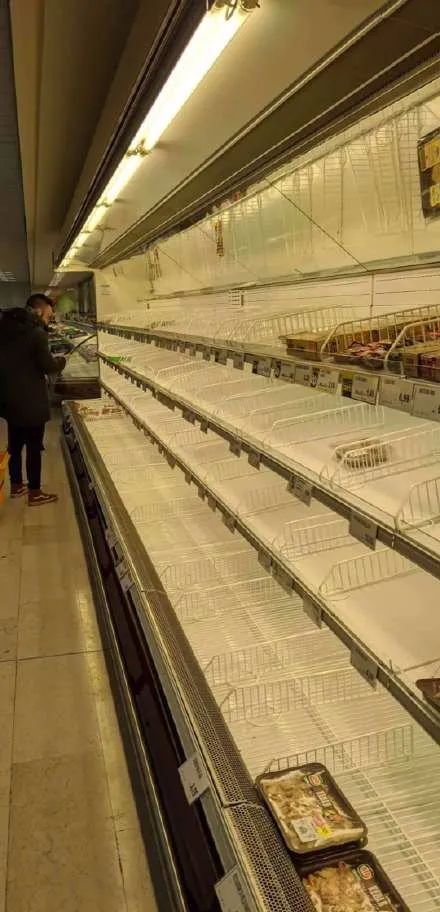 沒多久,各大商超便被搶購一空,貨架空空蕩蕩。