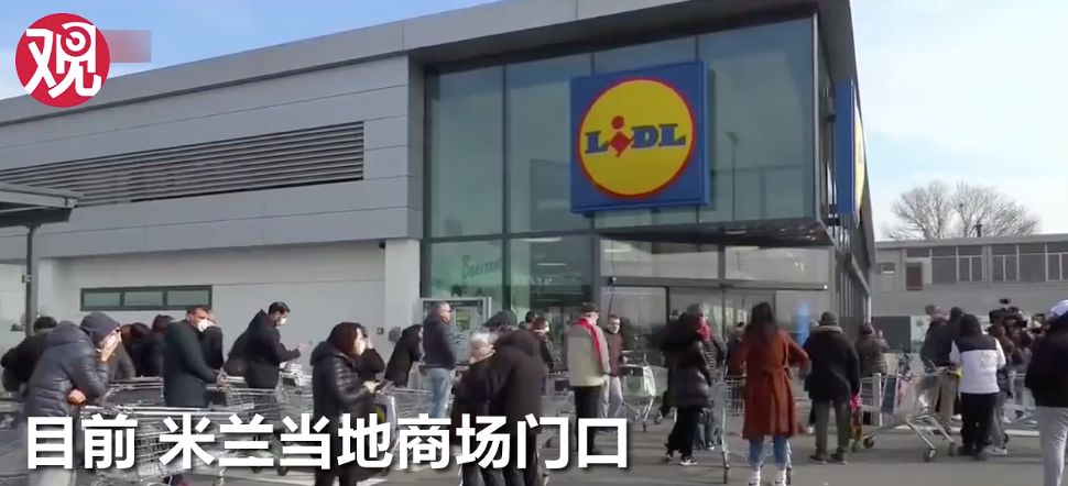 意大利居民早早在超市門口排起長隊,準備囤貨。