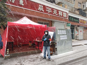 宋永義和矯寧是“九三學(xué)社”社員,作為第一批下沉人員,在東莞路社區(qū)進行人員摸排、防疫宣傳、流動人口篩查等項工作。宋永義同志更是主動申請繼續(xù)作為第二批人員,連續(xù)奮戰(zhàn)22個日日夜夜,與另外七名同志一起,對兩個馬路路口進行24小時值守,登記篩查進出人員車輛。他們兩人一組,女同志值白班,男同志值夜班,戰(zhàn)風(fēng)雪、斗嚴寒,連軸轉(zhuǎn)、不眠不休,在艱苦的露天環(huán)境下每天登記篩查五百余人(車)次,及時掌握了外來人員信息,把住了“輸入關(guān)”。他們的身姿佇立在風(fēng)雪中,他們的身影閃現(xiàn)在路燈下。