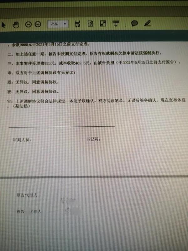 在法官調(diào)解下,雙方當(dāng)事人逐漸形成共識(shí),最終達(dá)成調(diào)解協(xié)議并在線上確認(rèn)筆錄并簽字。