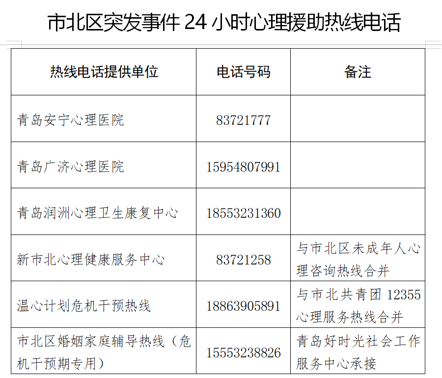 新聞鏈接-----市北區(qū)開通的六條心理服務(wù)24小時(shí)熱線電話: