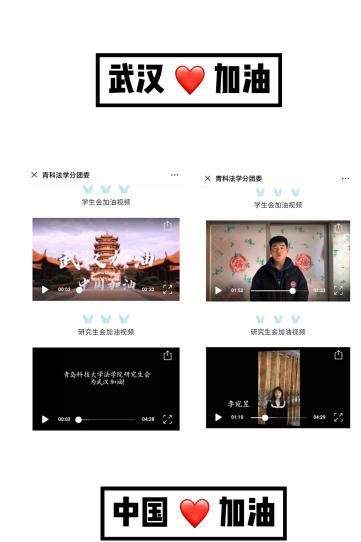 (二)開展抗疫主題活動。青島市慈善益站青島科技大學法學院利用學院微信公眾號,立足法學與社會工作專業(yè),先后推出普法“戰(zhàn)疫”、心理“防疫”、辟謠“抗疫”、案例“觀疫”一系列專題文章,以便讓法學院全體師生多方面了解疫情情況;法學院學生會主席國奧以及研究生會主席李宛昱號召學生會成員與研究生會成員共同錄制了“武漢加油”專題視頻,用真誠的話語傳遞了抗疫的力量;法學院學子們積極發(fā)揮自身特長,用書法、海報、手繪、詩歌、短視頻等多種文化作品形式,助力抗疫工作,致敬“最美逆行者”。同學們的抗疫主題作品累計二十余份,體現(xiàn)了同學們共同打贏疫情防控阻擊戰(zhàn)的堅定信心。