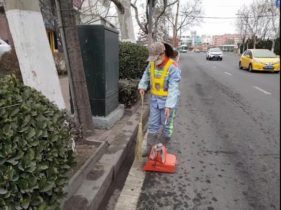 在防疫阻擊戰(zhàn)的關鍵時期,島城環(huán)衛(wèi)工人堅守工作一線,從城市“美容師”變成群眾的“守護者”,為營造“干凈、整潔”的城市環(huán)境默默付出辛勤的汗水。面對突發(fā)的疫情,李滄環(huán)衛(wèi)工人陳學明第一個打報告申請堅守崗位。測量體溫、登記信息、穿好環(huán)衛(wèi)服、佩戴口罩和手套、拿上消毒藥劑桶、帶上清潔工具……在青島市四流中路上,陳學明的動作嫻熟而利索。陳學明的妻子、兩個兒子和兒媳都是環(huán)衛(wèi)工人,這個春節(jié),他們都堅守在環(huán)衛(wèi)崗位上,每天早上5點半就到崗。與平時不同的是,陳學明和家人不僅負責日常的環(huán)衛(wèi)作業(yè),確保城市道路的清潔和垃圾日產日清,還要對果皮箱、廢棄口罩垃圾桶進行全面消毒清洗工作,尤其要重點加強對衛(wèi)生死角的清理和消毒,并處理好那些丟棄的一次性口罩、手套,每天都要進行至少3次消毒,確保防疫無死角。疫情期間時間緊張,雖然環(huán)衛(wèi)人有暖暖和和的休息室,陳學明一家中午經常在寒風中坐在馬路牙子旁吃午餐。他們說要當好“橙衣戰(zhàn)士”,苦點累點都不怕,為防控疫情出點力。
