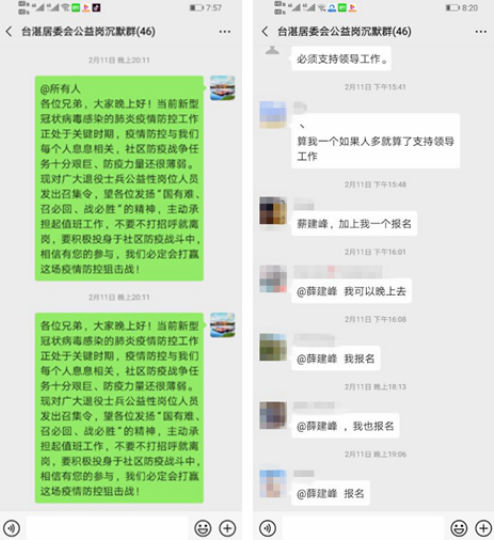 負(fù)責(zé)社區(qū)退役軍人工作的薛建峰建立了一個公益崗的聯(lián)系群,現(xiàn)在投入到社區(qū)疫情防控工作中的退役士兵有42人,承擔(dān)著監(jiān)測點執(zhí)勤、志愿者巡邏和張貼宣傳海報等等工作。由于家庭和個人情況,未能參與到抗擊疫情一線的老兵們也沒有閑著,都在用自己的方式為社區(qū)做著貢獻?!拔医裉煸诮值篱_會的時候,一個退役士兵大哥悄悄給我一把額溫槍,問我社區(qū)現(xiàn)在是不是缺這個。我們上周剛剛發(fā)了一份倡議書,鼓勵居民們給我們捐贈額溫槍,這個大哥就給送來了。我能想象到他是托了多少朋友、跑了多少地方才弄到這一把額溫槍,真的很受感動;我們社區(qū)還有一位退役士兵,在還沒發(fā)動捐款的時候,他就通過社區(qū),向武漢捐出了1000塊錢。他自己本身家庭也不富裕,還有比較嚴(yán)重的心臟病,但他說,武漢一線的白衣天使們不容易,這錢是捐給他們的?!?/p>