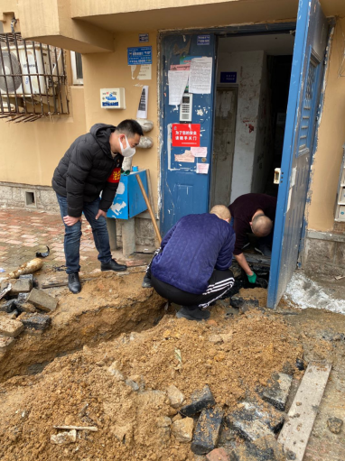 “樂安支路9號1號樓單元門口古力冒溢,社區(qū)抓緊來看看吧”。接到居民的反映電話,樂安路社區(qū)副主任孫鐘相馬上趕到了現(xiàn)場。一樓的兩戶房子年后一直無人居住,房主一時也聯(lián)系不上,無法進門查看情況。污水從單元門口已經(jīng)流的滿地都是,氣味難聞,居民日常出入已經(jīng)受到了影響。特別是新冠肺炎疫情蔓延的特殊時期,如果不及時處理,細菌滋生更會造成居民的恐慌和不滿。查看完現(xiàn)場的情況,孫鐘相立即決定先個人墊付資金找施工隊來修理,待疫情結(jié)束之后再挨家挨戶找居民分攤施工的錢。受疫情的影響,下水管道維修人員基本沒有返青開工,幾經(jīng)周折才找到了2名施工人員。孫主任與施工員一起,人工開挖地面,從樓外面沿著管道一點一點找漏點、鋪管道、恢復(fù)原貌。半天的時間就解決了10余戶居民的生活困擾。