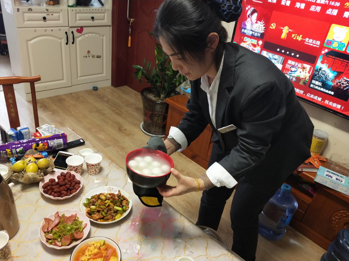 吃飯是孩子最頭疼的事,管家孟花蓮幾次在值班期間抽出時(shí)間,與安全主管王勇一起入戶為孩子做飯,這一天是家人團(tuán)圓的日子-元宵節(jié),得知孩子最愛吃西紅柿炒雞蛋,管家特意到附近超市買來(lái)食材,認(rèn)真清洗后為孩子烹飪。一個(gè)菜雖夠孩子吃,卻不夠營(yíng)養(yǎng),所以,葷素搭配,一個(gè)小時(shí)功夫,三個(gè)菜、圓溜溜的湯圓華麗現(xiàn)身,樂得孩子嘻嘻直笑~管家把孩子吃飯的視頻發(fā)于父母后,業(yè)主連連感謝管家的細(xì)心和貼心。