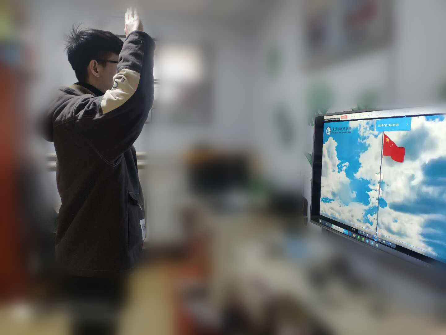 3月2日,在市人社局的指導(dǎo)下,平度市技師學(xué)院全校師生“云”端相約,通過網(wǎng)絡(luò)平臺開啟了新學(xué)期第一課。上午8時(shí),平度市技師學(xué)院師生通過電腦、平板、手機(jī)等隔空相聚,當(dāng)《義勇軍進(jìn)行曲》奏響的那一瞬間,大家面向屏幕中冉冉升起的五星紅旗,肅立行禮,以一種特殊方式,共同開啟2020年春季學(xué)期的新篇章。副院長李孟磊通過網(wǎng)絡(luò)為全院師生上了一堂以“戰(zhàn)勝疫情技能報(bào)國”為主題的開學(xué)第一課。李院長以疫情時(shí)期珍愛生命、有所作為為切入點(diǎn),希望同學(xué)們樹立以技能報(bào)國的遠(yuǎn)大理想,培養(yǎng)正確的世界觀、人生觀、價(jià)值觀,做一個(gè)心存敬畏、知曉感恩、剛毅堅(jiān)卓,有責(zé)任、有擔(dān)當(dāng)?shù)膶W(xué)子。