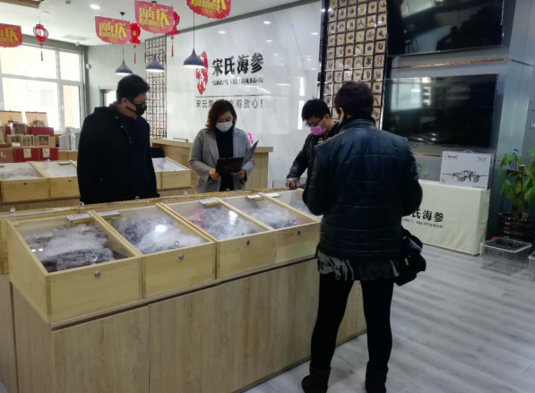 在位于市場三路的市北區(qū)即墨路街道干海產(chǎn)品一條街,經(jīng)營干海產(chǎn)品批發(fā)、零售等的商家紛紛開門營業(yè);在國際海參城宋氏海參店內(nèi),海參加工流水線重新啟動(dòng),推出的“買二送一”“買一送一”等優(yōu)惠吸引不少消費(fèi)者前來選購。