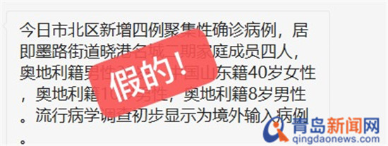 青島新聞網(wǎng)3月31日訊(記者 丁淑華)近日,青島人的朋友圈流傳一則消息稱“市北區(qū)曉港名城二期新增四例奧地利輸入性病例,涉及密切接觸者69名”。經(jīng)落實(shí),相關(guān)信息系不實(shí)信息,曉港名城二期無(wú)奧地利入青人員。疫情防控關(guān)鍵是機(jī)器,提醒大家關(guān)注官方疫情發(fā)布,不造謠、不信謠、不傳謠,共同營(yíng)造良好的網(wǎng)絡(luò)環(huán)境。