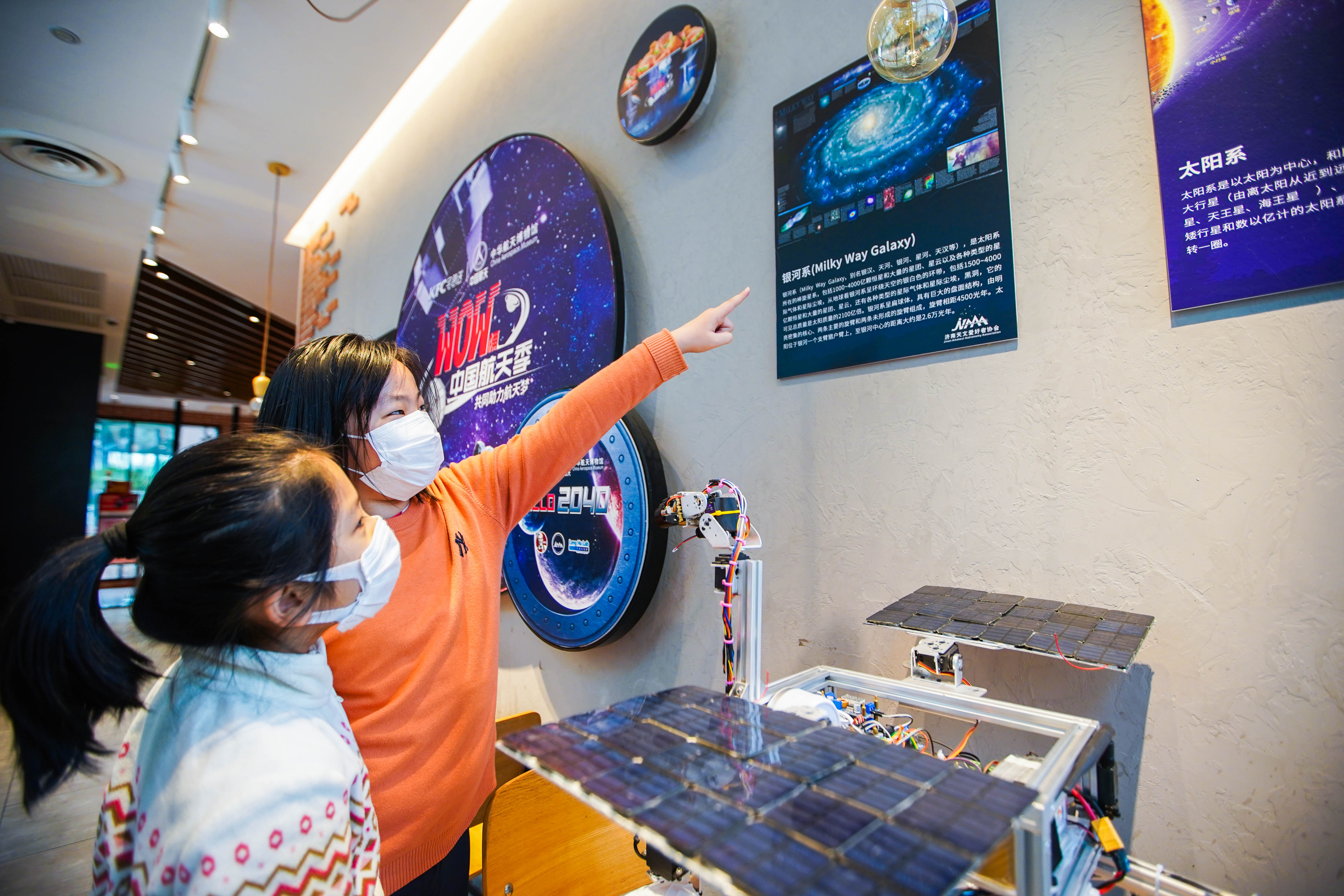 在濟南經(jīng)十汽車穿梭餐廳,餐廳則化身為“天文愛好者驛站”和濟南眾多的天文愛好者一起交流觀星體驗、探索星空奧秘。同時冷湖實驗室也將在未來聯(lián)手肯德基經(jīng)十汽車穿梭餐廳長期開展科普活動,從航空航天知識到火星探測器組裝、衛(wèi)星通訊、火星生物圈打造等課題,讓孩子們無限接近航天科技夢,致敬中國航天事業(yè)。