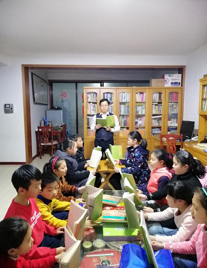 2003年,我創(chuàng)辦了公益性質(zhì)的“兒童國(guó)學(xué)經(jīng)典誦讀班”,利用周末晚上和其他空余時(shí)間,上課2100多節(jié),先后輔導(dǎo)100多位孩子誦讀四書五經(jīng)、詩詞曲賦等國(guó)學(xué)經(jīng)典。這 17年來,我搬過三次家,變動(dòng)過三次工作單位,甚至有十多年是從事加班加點(diǎn)為常態(tài)的研究室工作,但是我都堅(jiān)守不輟。 17年來,我不僅分文未取,而且購(gòu)置3000余冊(cè)圖書供孩子們隨時(shí)借閱,還自費(fèi)印制照片和影像,為孩子們錄下珍貴的成長(zhǎng)資料。這些孩子,有的是小區(qū)居民,有的是外地來青打工創(chuàng)業(yè)家庭的子女,有的是低保戶或貧困家庭的子女,有的是殘疾人,我都一視同仁,傾心培育。