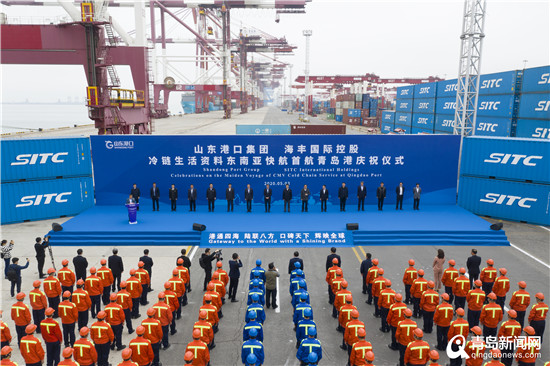 青島新聞網(wǎng)5月4日訊“五一”國際勞動(dòng)節(jié)期間,山東省港口集團(tuán)再傳捷報(bào)。5月3日,伴隨汽笛長鳴,山東省港口集團(tuán)?海豐國際控股冷鏈生活資料東南亞-青島快航首航儀式在山東港口青島港前灣聯(lián)合集裝箱碼頭101泊位舉行。
