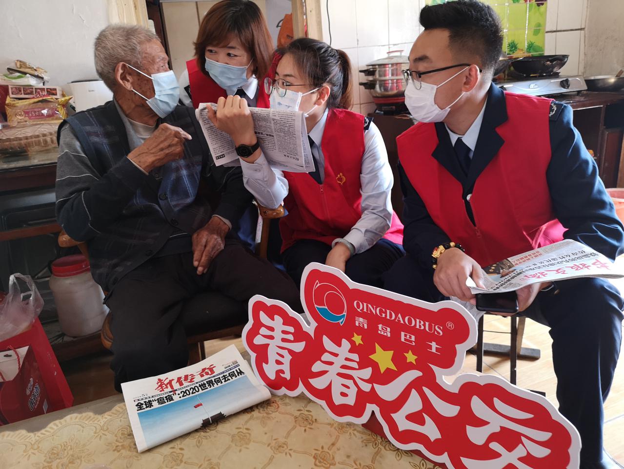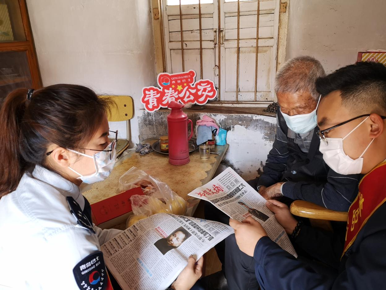 90歲的曲方平大爺家,看到志愿者到來的剎那間,老人臉上浮現(xiàn)出驚喜的表情,志愿者為曲大爺帶來了他愛看的雜志和報(bào)刊,共青團(tuán)志愿者張恒瑞和孫偉杰為曲大爺誦讀了報(bào)紙上的精彩文章,曲大爺說聽志愿者讀報(bào),今天就不用費(fèi)眼神看了。團(tuán)員志愿者說:只要爺爺愛聽,以后我們會(huì)常來陪伴您為您讀書讀報(bào)的。曲大爺聽了高興的拍手叫好。志愿者詢問了曲大爺最近的身體情況,講述了最近外面的一些新鮮事與老人一起分享。