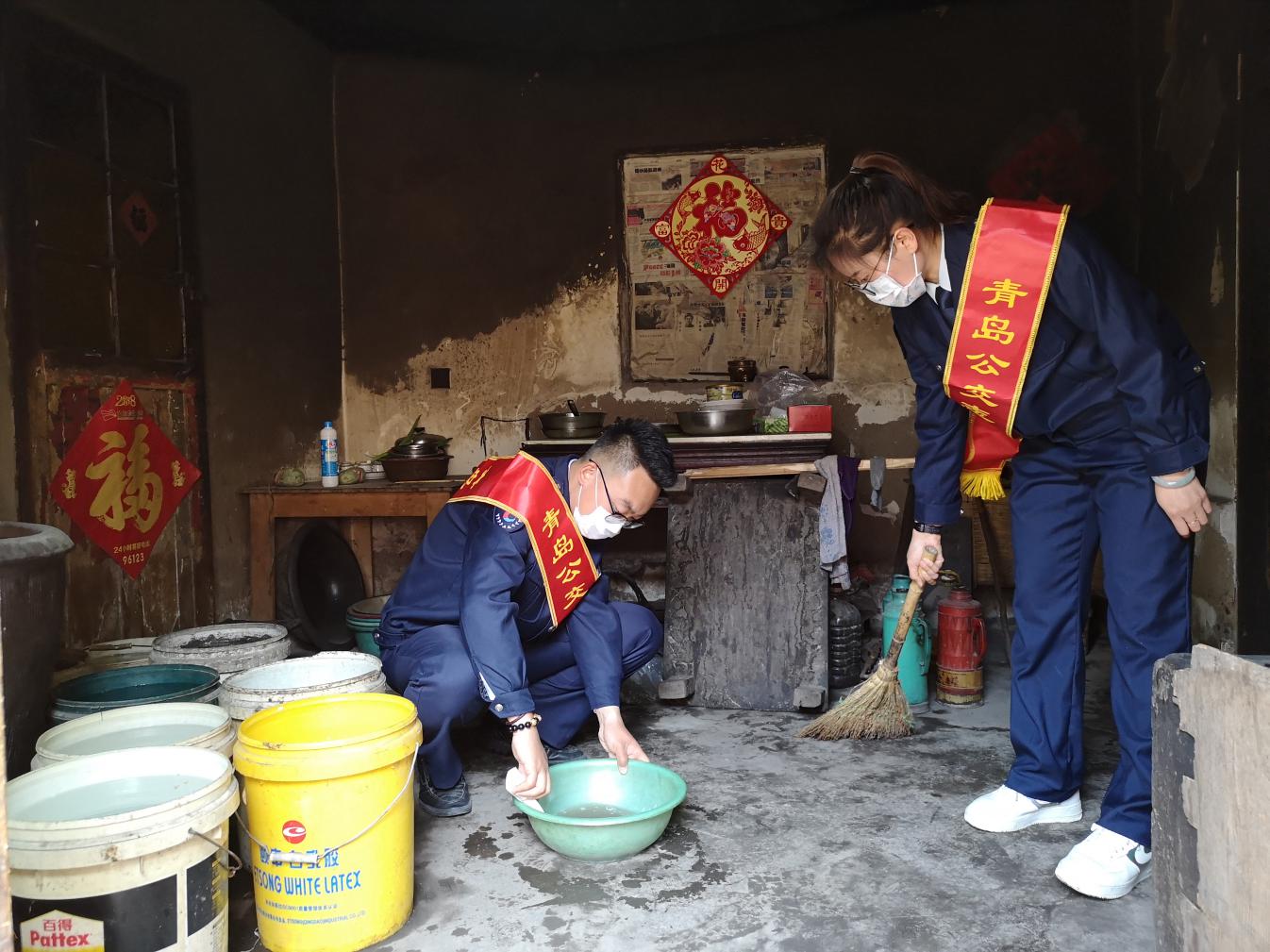 80歲的王祝才大爺家,一進(jìn)門桌面上雜亂的碗筷映入志愿者眼簾,大家七手八腳開始忙碌,青年團(tuán)員更是不怕臟,不怕累,洗碗筷,清掃地面,擦桌子,干的順心應(yīng)手。王大爺用含糊的言語感謝志愿者的辛勤付出。