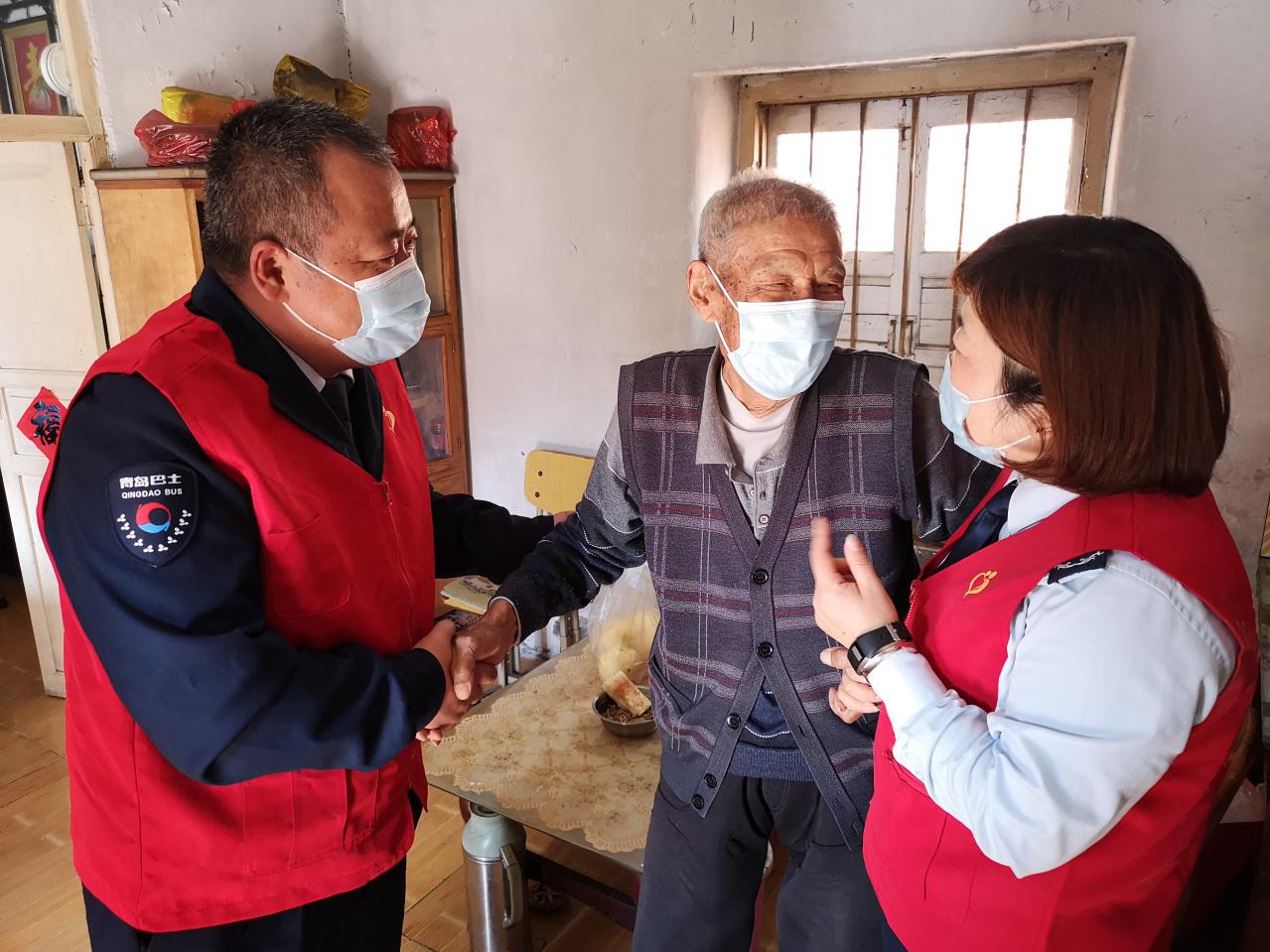 90后志愿者是朝氣蓬勃,奮發(fā)有為,肩負(fù)民族未來希望的青年一代。五四青年節(jié)來臨之際,青島市慈善益站“怡善巴士”青島公交嶗山巴士第六分公司愛心團(tuán)隊(duì)的黨團(tuán)員志愿者孟珂、丁健、孫偉杰、張恒瑞在黨支部書記董善杰的帶領(lǐng)下,相約來到嶗山區(qū)金家?guī)X街道王家村社區(qū)探望結(jié)對(duì)的老人,為老人購買了新鮮雞蛋、水果和老人愛吃的桃酥。