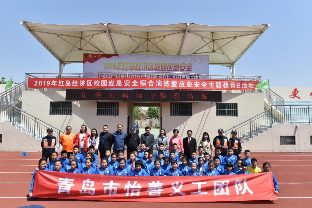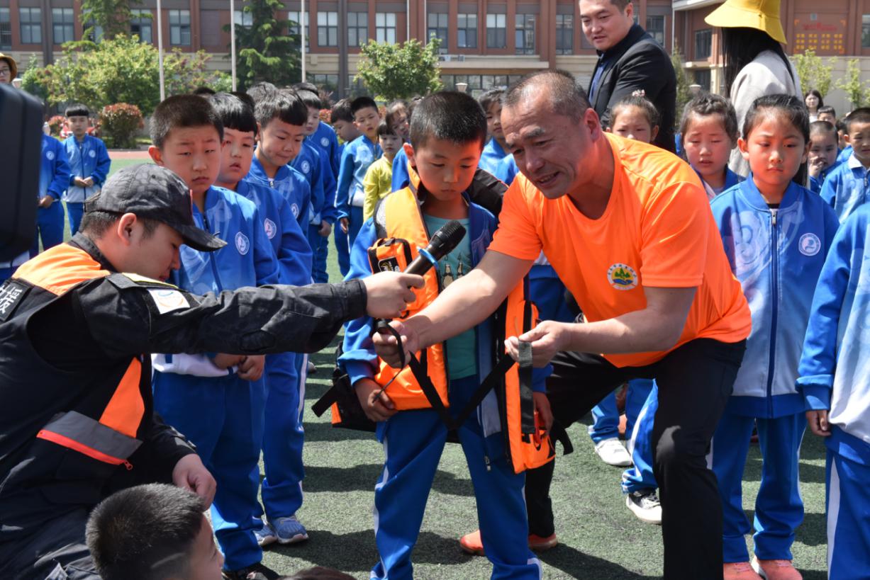 青島市救生協(xié)會的志愿者為紅島中心小學(xué)的師生們