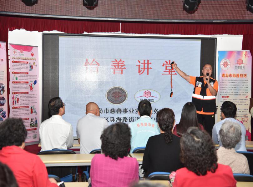 請分享“‘怡善講堂’慈善服務(wù)”進市南區(qū)珠海路街道辛家莊社區(qū)黨群服務(wù)中心活動場景