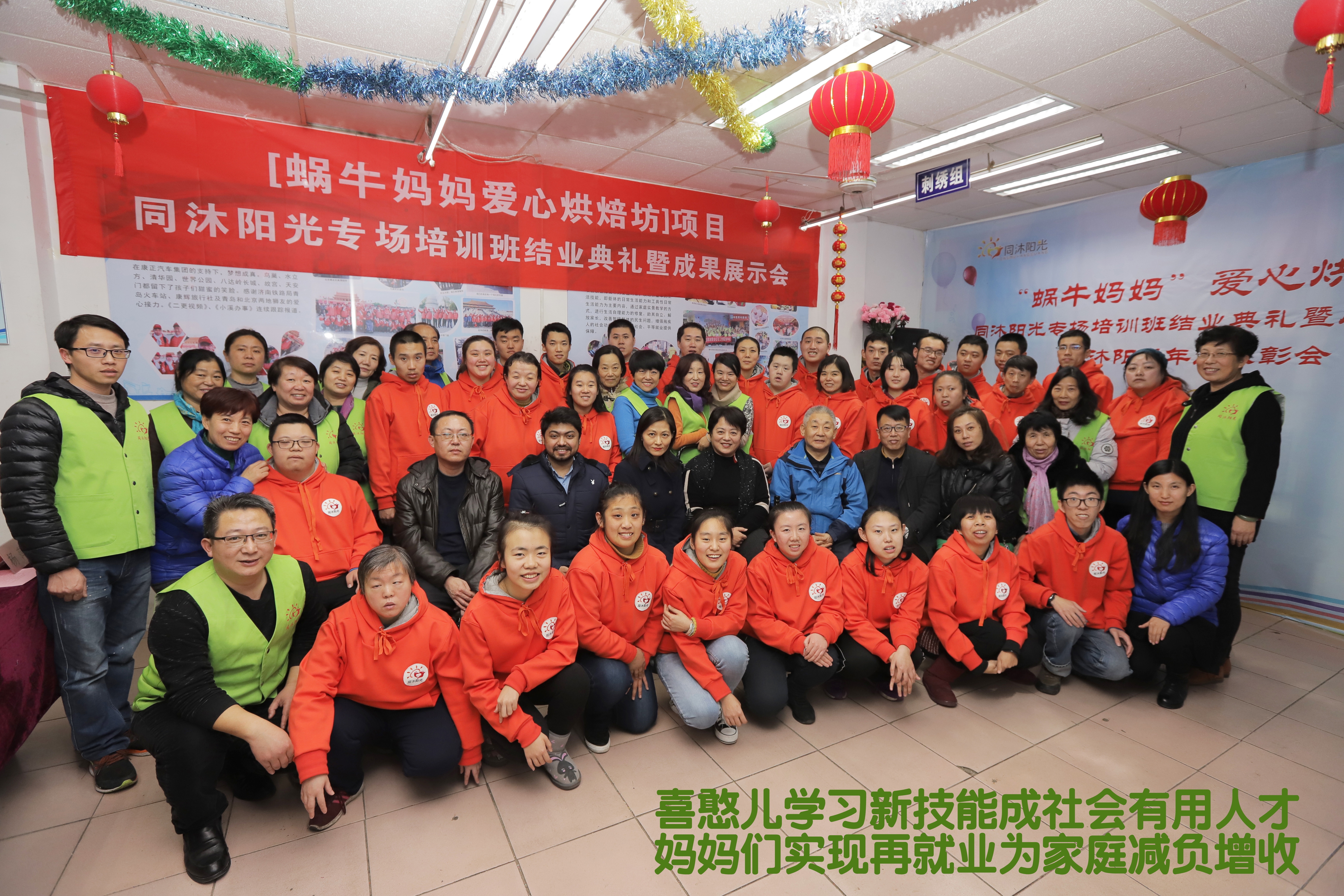 通過全體老師和志愿者的多年培訓(xùn)和實(shí)踐,在同沐陽光的40多名殘疾孩子能夠快樂的工作和快樂的生活,而他們的家長也徹底得到了的解放。有些家庭困難的媽媽們?yōu)榱私o家中增加收入,她們也想去工作??墒撬齻兇蠖嘁呀?jīng)50多歲了,已經(jīng)二三十多年沒有出去工作了,已經(jīng)喪失了基本的工作技能和謀生能力。2018年6月,“愛心烘焙坊”項(xiàng)目榮獲山東省紅十字會(huì)和山東省婦聯(lián)“魔豆媽媽”創(chuàng)業(yè)扶貧大賽二等獎(jiǎng),我本人也榮獲山東省十佳“魔豆媽媽”。2019年4月,我籌資建立“Sunny愛心烘焙坊”展能培訓(xùn)中心,解決了5名自閉癥青年及5名困難家庭的媽媽們實(shí)現(xiàn)了技能型就業(yè)。