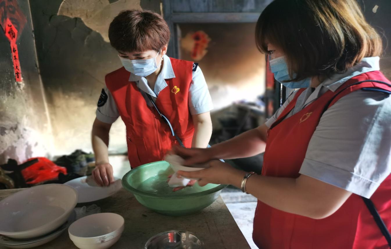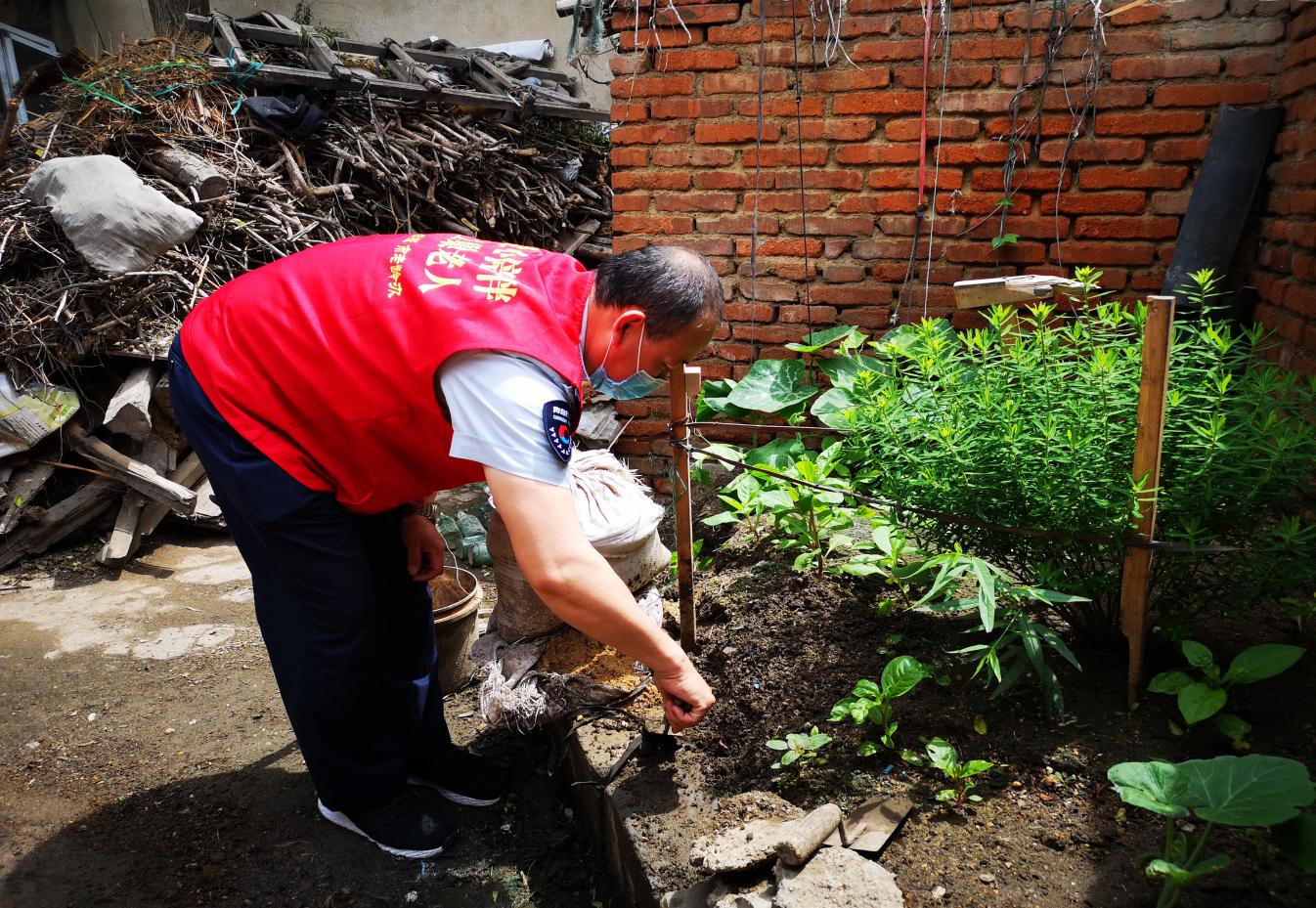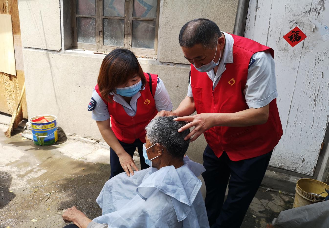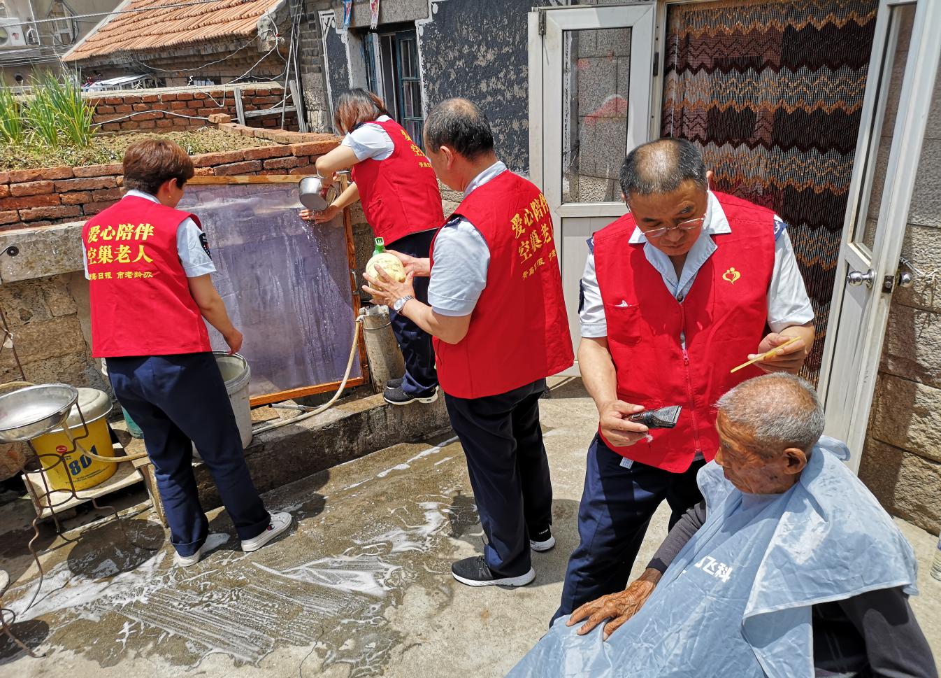 隨后,志愿者們一起來到了 80歲的王祝才大爺家中,老人正坐在院里曬太陽,一進門,志愿者們便開始分工忙碌,掃地、擦桌子、洗刷碗筷、為王大爺理發(fā),大家忙的不亦樂乎。志愿者們看見老人最近消瘦了不少,叮囑王大爺天熱一定要按時吃飯。