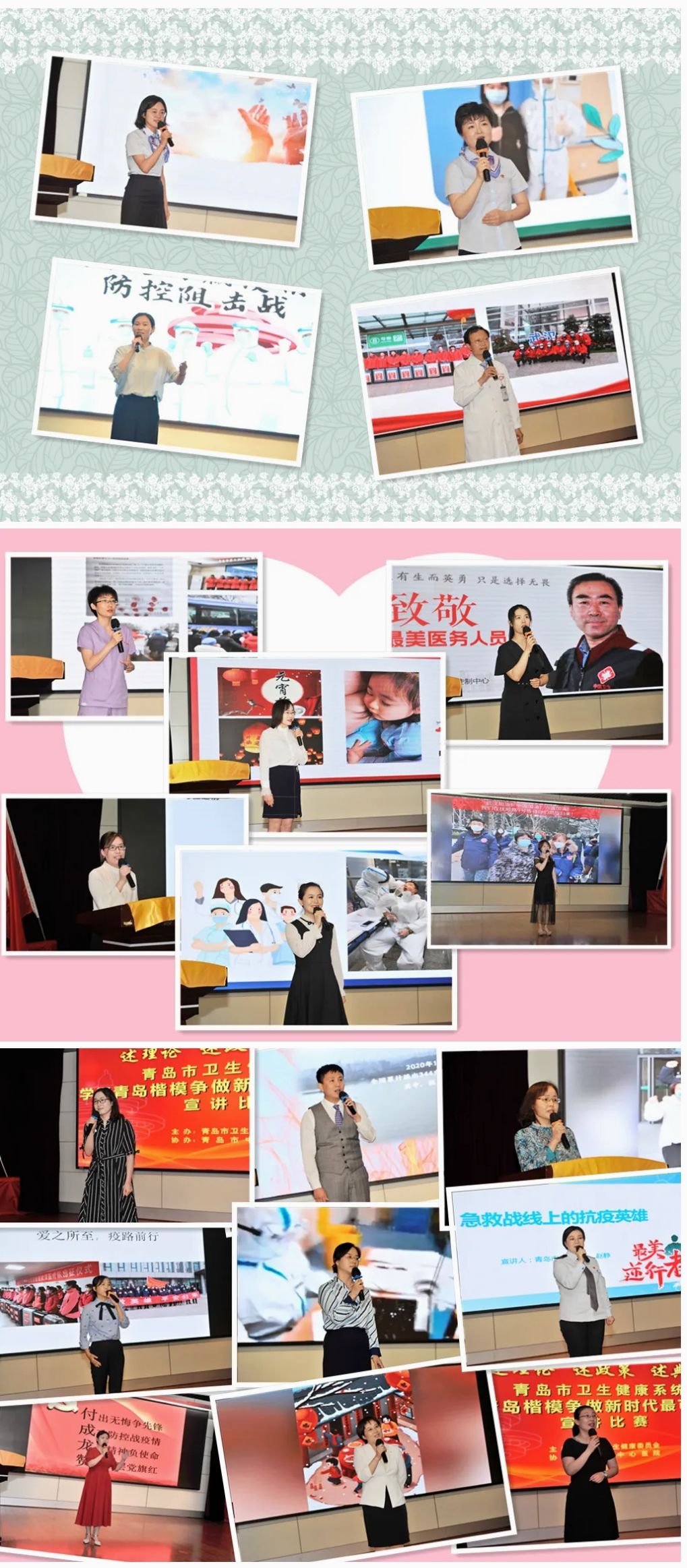 為充分發(fā)揮“青島楷?!钡氖痉兑I作用,市衛(wèi)生健康委在全市衛(wèi)生健康系統(tǒng)組織開展了“學習青島楷模爭做新時代最可愛的人”宣傳教育活動。此次宣講比賽,53名宣講員緊緊圍繞戰(zhàn)“疫”故事這一主旋律,用最真摯的情感、各具特色的宣講方式以及自然樸實流暢的語言,將一個個抗疫先鋒的先進事跡聲情并茂地呈現在評委面前,用真人、真事、真情表達白衣執(zhí)甲的家國情懷,展現了新時代“白衣天使”不忘初心、牢記使命的精神風貌和不懼風雨、勇挑重擔的優(yōu)秀品質,號召全市10萬余名衛(wèi)生健康工作者汲取榜樣力量,擔當作為、勇?lián)厝?,堅決守護好人民群眾身體健康和生命安全,推動我市衛(wèi)生健康事業(yè)不斷發(fā)展,實現疫情防控和經濟社會發(fā)展“雙勝利”。