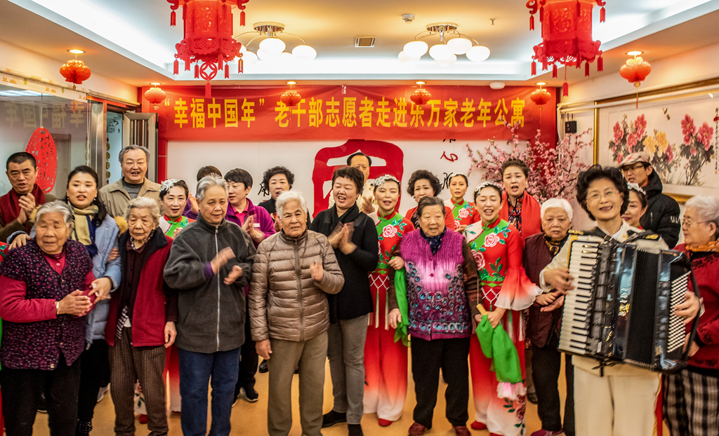 志愿者 與敬老院里的老年人一起過小年