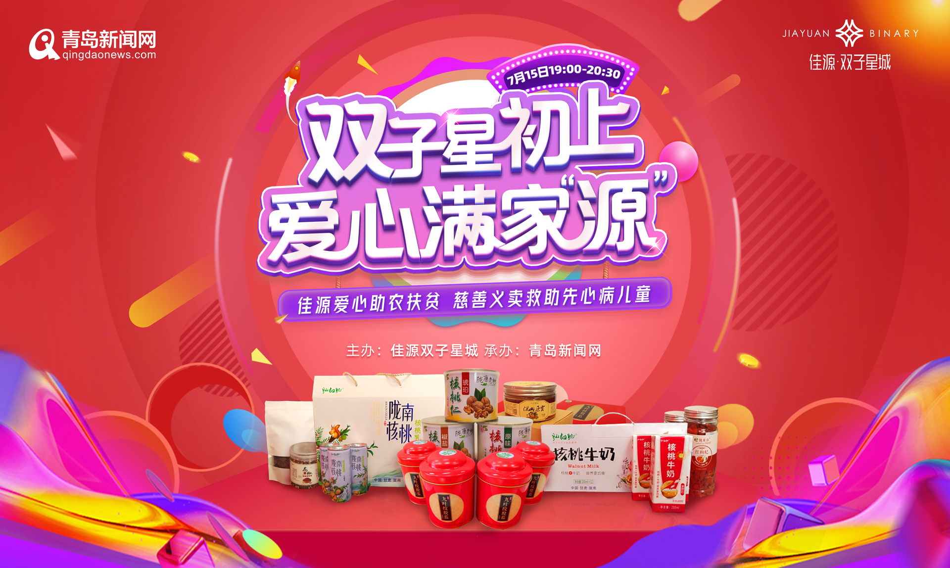 (記者 于灝源)7月15日晚間19:00-20:30,由佳源雙子星城主辦,青島新聞網(wǎng)承辦的“雙子星初上愛心滿家源”助農(nóng)扶貧慈善義賣直播活動(dòng)將在青島新聞網(wǎng)和微信小程序上線。作為“網(wǎng)信助力”青島網(wǎng)絡(luò)直播帶貨季的重點(diǎn)活動(dòng)之一,本次直播將帶來(lái)隴南核桃乳、紅枸杞、多種口味核桃仁、大紅袍花椒等甘肅隴南助農(nóng)優(yōu)質(zhì)特產(chǎn)。