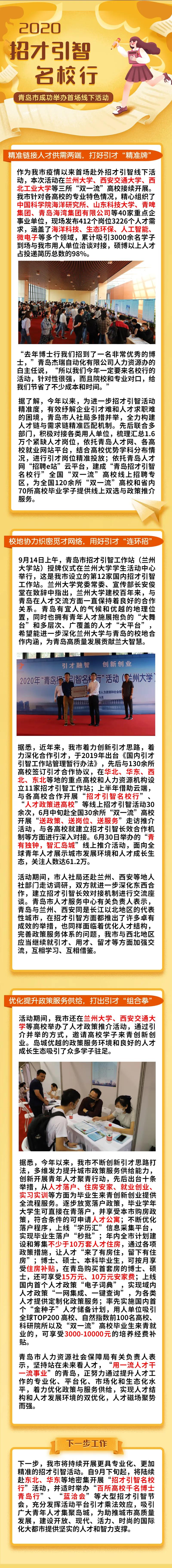 青島新聞網(wǎng)9月24日訊 為深入推進(jìn)“雙招雙引”等15個攻勢,通過密集開展招才引智活動實現(xiàn)青年人才集聚,給島城高質(zhì)量發(fā)展注入強大人才動能。9月14日-18日,我市在蘭州、西安等地舉辦2020年首次“青島市招才引智名校行”活動。