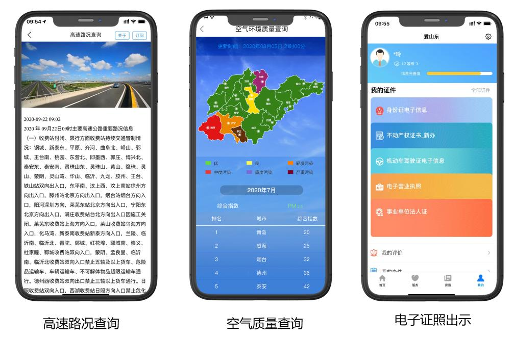 此外,在山東打開“愛山東”APP,還能查詢高速路況、環(huán)境氣象、駕駛員記分等出行服務(wù)。同時,將電子身份證、駕駛證、行駛證等常用電子證照提前領(lǐng)取放入“卡包”中,出行在外,證件遺失忘帶也能輕松應(yīng)對,真正實現(xiàn)“一部手機(jī)走齊魯”。