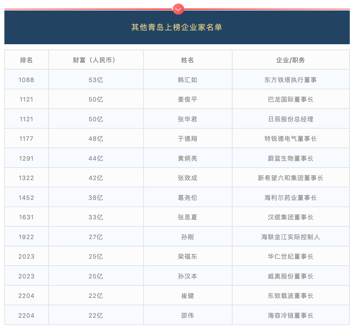 今年上榜的16位青島富豪,從他們所從事行業(yè)的屬性即能看出青島偏重制造業(yè)發(fā)展的經(jīng)濟(jì)特點(diǎn)。