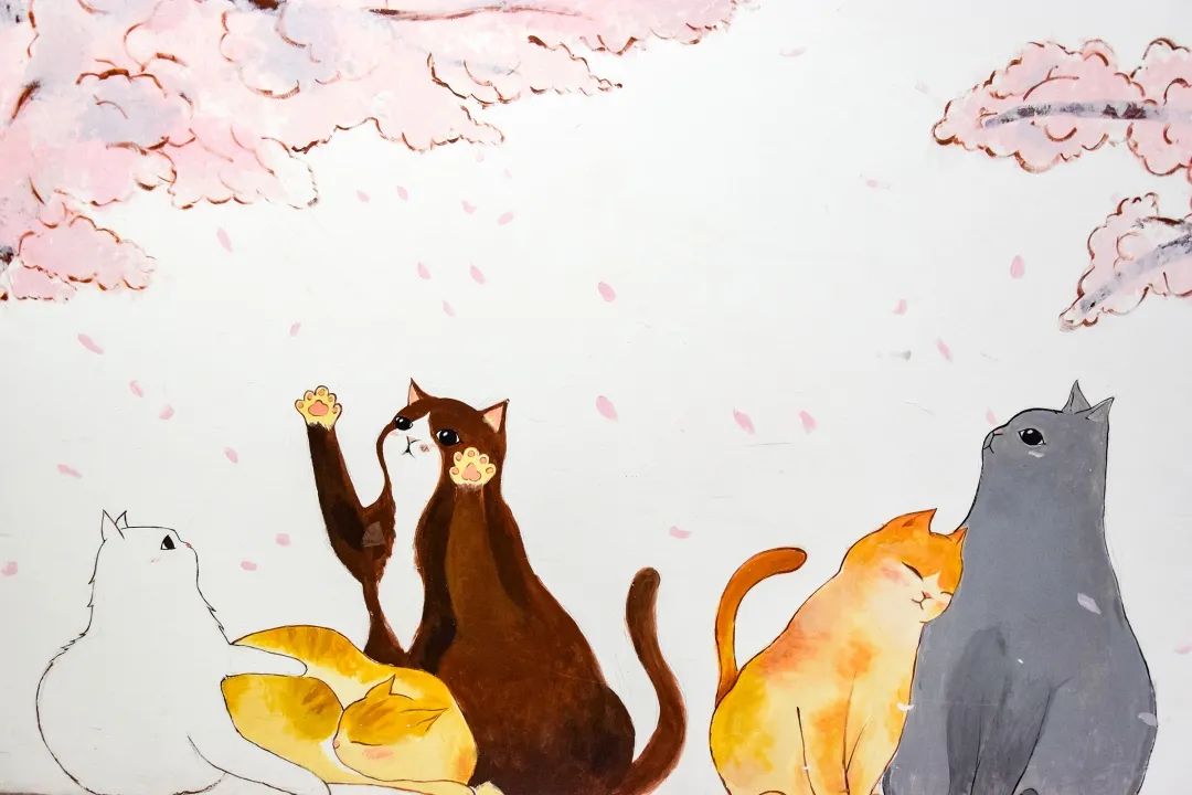 貓咪相互依偎沉醉櫻海
