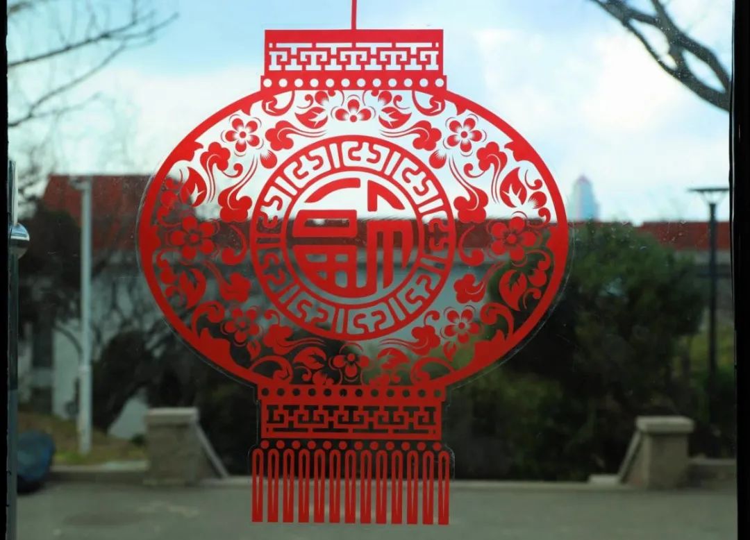 掛著燈籠形狀的剪紙窗花