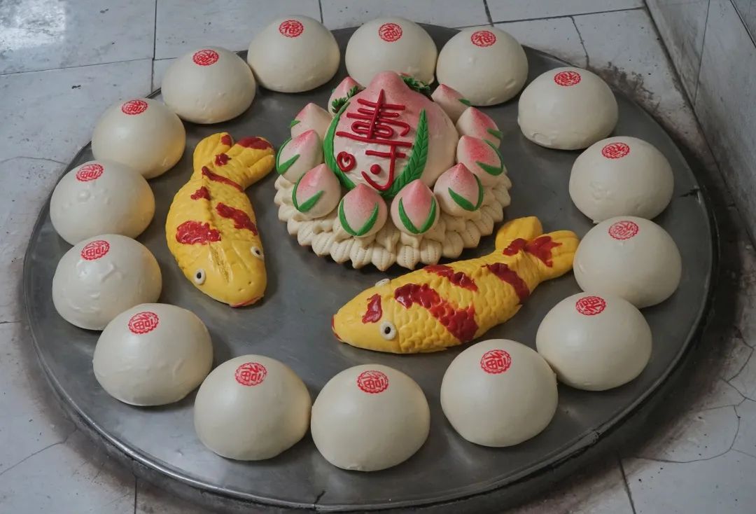 老人壽辰祝壽用的壽桃、錦鯉,還有各種小花形狀的彩色饅頭等等,無不讓人耳目一新。