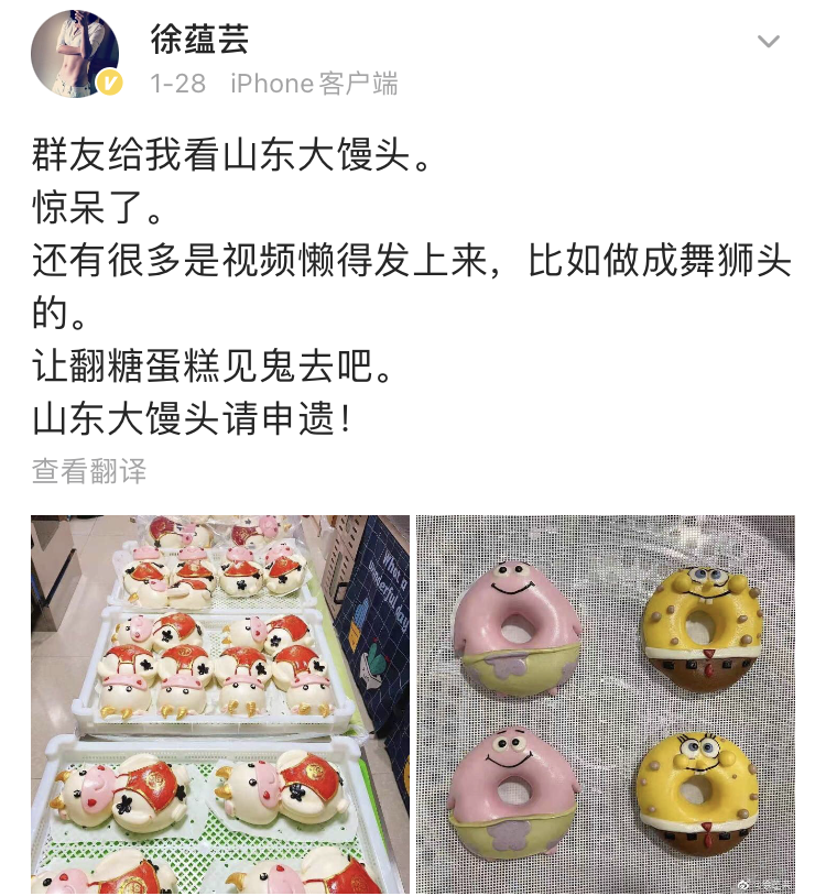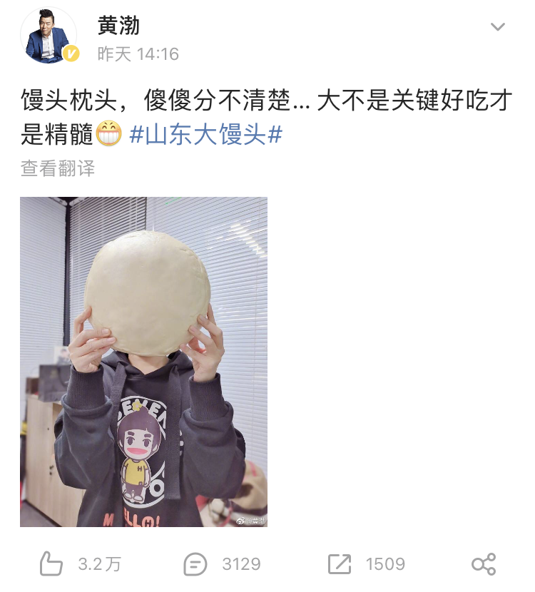 在微博分享了一個超大饅頭