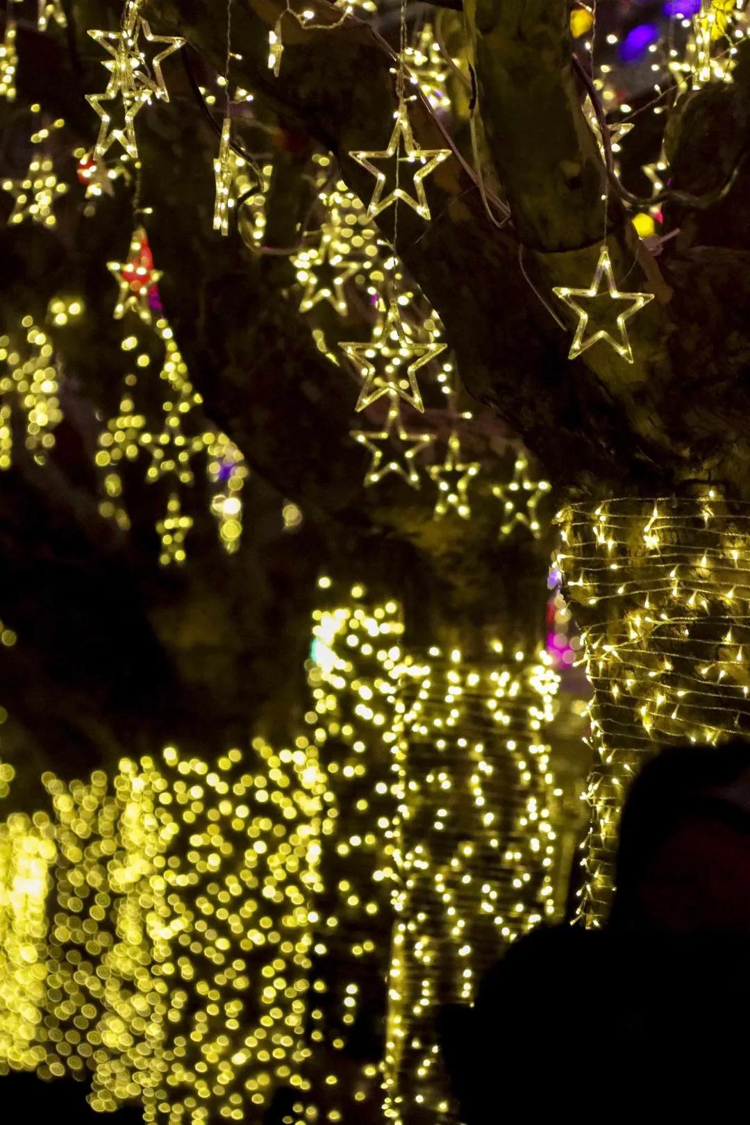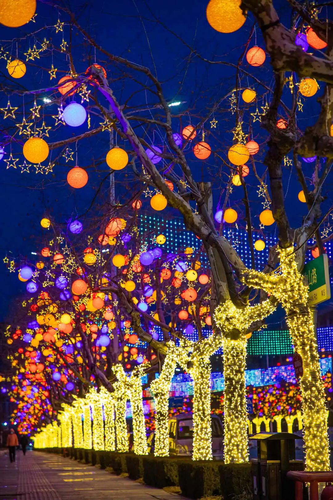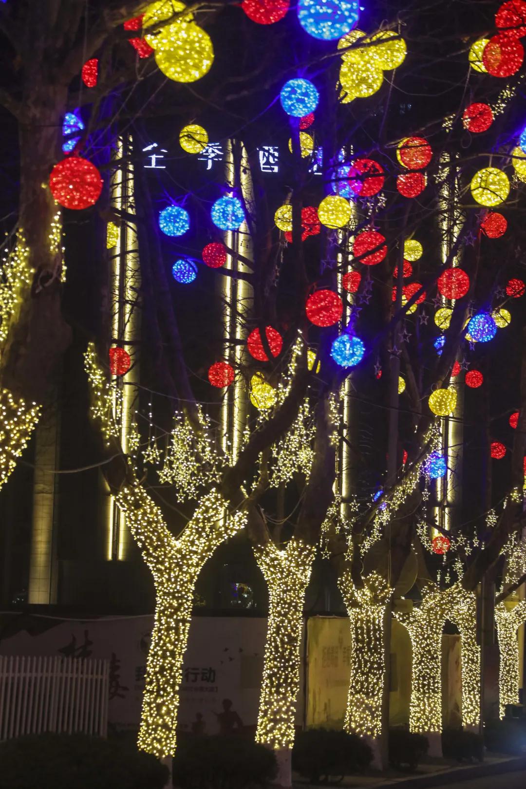 新年將至,行道樹(shù)“開(kāi)”出了彩燈,