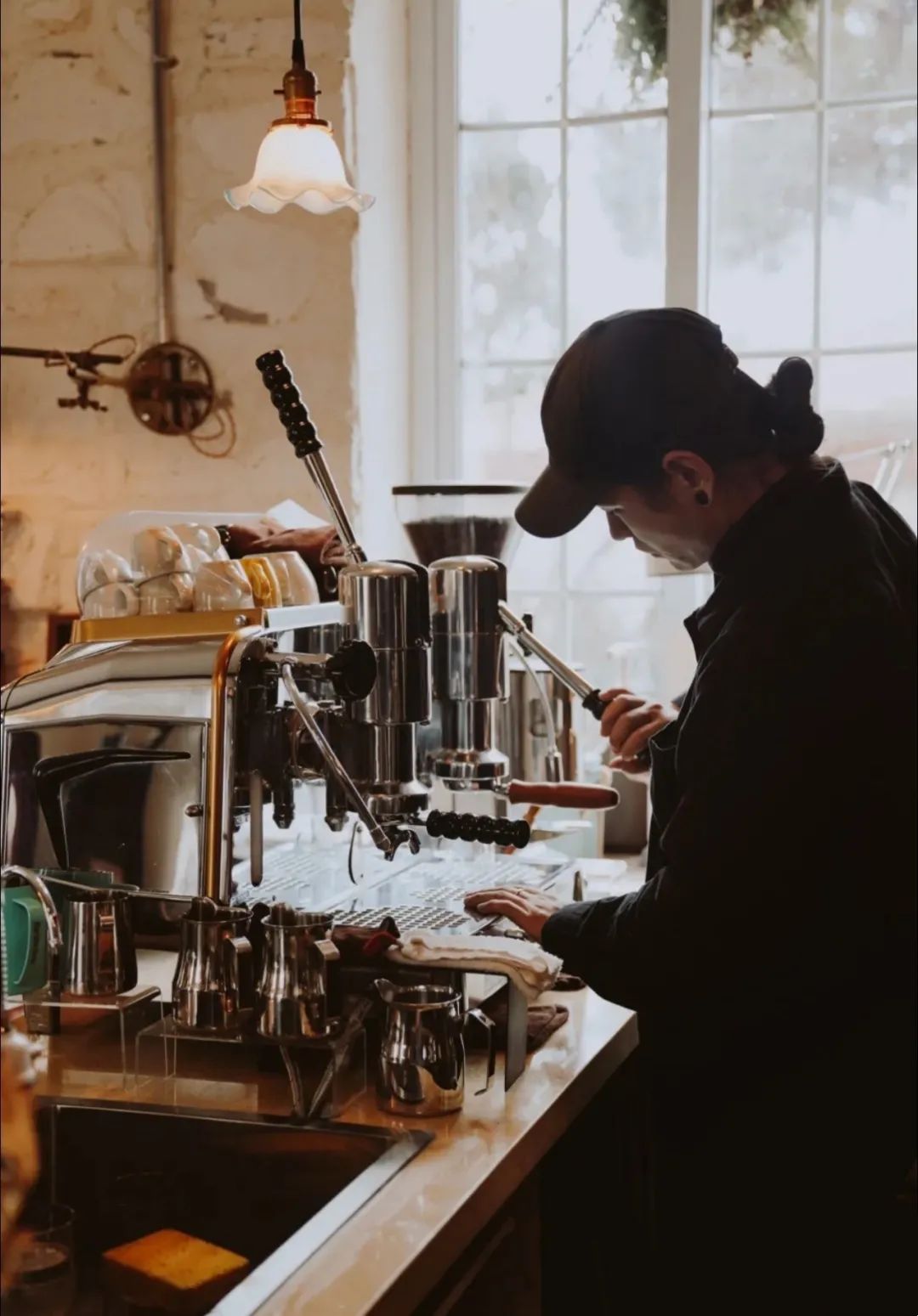 核桃木老雕刻的法式老家具、老舊的臺面、裂紋的古董盤子、復(fù)古的燭臺、一臺62年的純機械式faema咖啡機.......