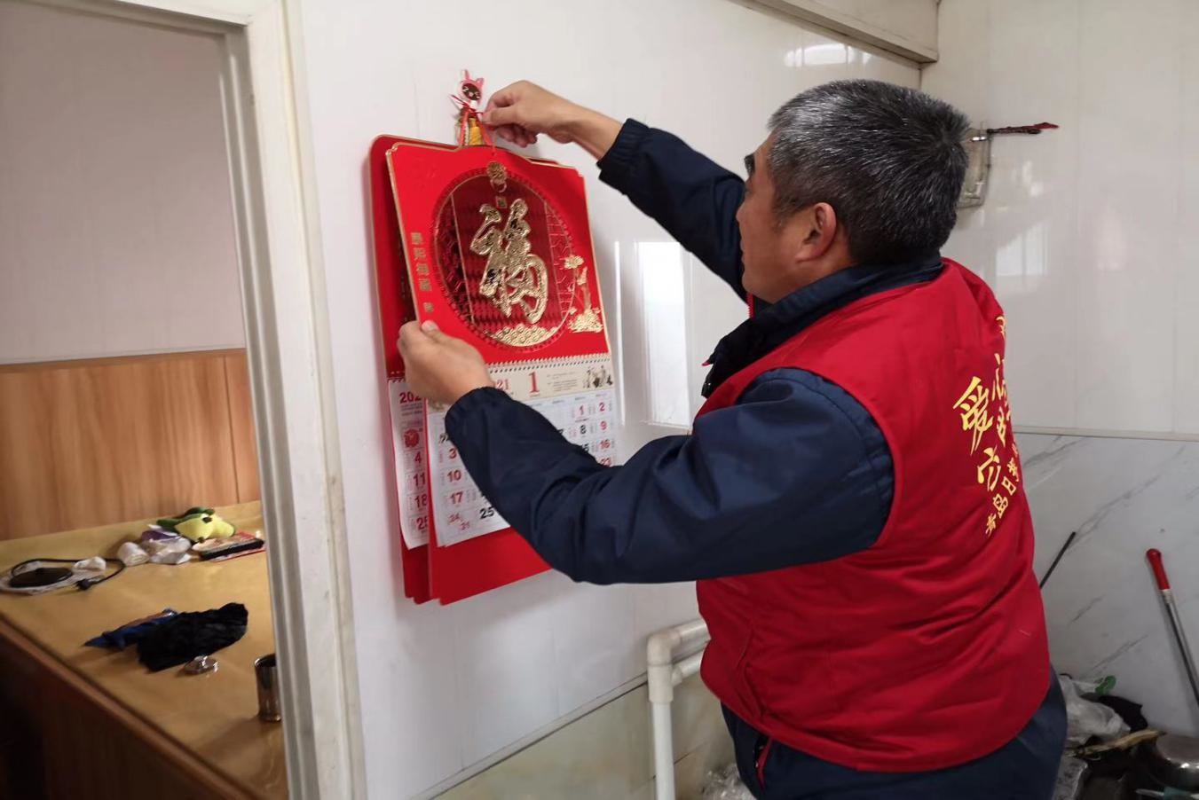 85歲的王淑蘭阿姨家,老人家正在熱炕頭看連續(xù)劇,志愿者進屋老人家趕緊拉著志愿者到爐邊取暖,說起前幾日去趕集有送掛歷的老人家就沒要,當別人很詫異時,王阿姨很自豪的說:我有愛心團隊每年都給我送。志愿者們聽了哈哈大笑。志愿者依舊將掛歷掛在了老地方。紅燦燦的“?!弊指裢庀矐c奪人眼目,寓意著新的一年好兆頭。