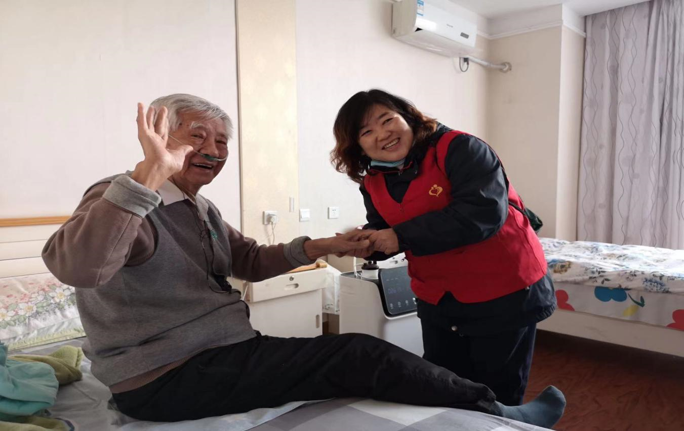 志愿者們在養(yǎng)老中心李總等工作人員的引導下為房間里、病榻前的老人們依依送上最衷心的新年祝福和禮物,祝愿老人們新的一年身體健康,吉祥如意。