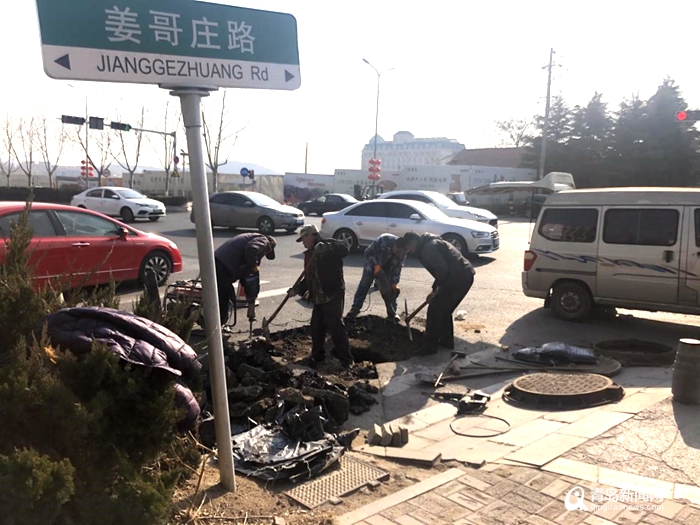 對(duì)于此類窨井問題,嶗山區(qū)城市管理局高度重視,積極協(xié)調(diào)沙子口街道辦事處及相關(guān)單位到現(xiàn)場進(jìn)行處置,為了保障原有各類管線的安全,施工人員一點(diǎn)點(diǎn)的把原管線上覆蓋板清除掉,由于原管線上覆蓋板為加重型蓋板,鋼筋混凝土強(qiáng)度比較大,給施工造成了不小的困難。在現(xiàn)場調(diào)度指揮下,各項(xiàng)工作緊鑼密鼓的進(jìn)行,清理損壞的窨井、協(xié)調(diào)預(yù)制好的上覆蓋板、吊裝機(jī)吊裝,最后進(jìn)行窨井蓋的安裝加固。為了保證春節(jié)期間車輛及道路的安全,施工進(jìn)度爭分奪秒,高效的完成了修復(fù)工作,并對(duì)損壞的地方進(jìn)行瀝青恢復(fù),保障節(jié)日期間車輛正常行駛和市容環(huán)境的美觀。