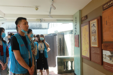 隨后,調(diào)研團(tuán)來(lái)到附近的黃遵憲故居參觀。黃遵憲故居是一座古樸的客家民居,走進(jìn)故居大門(mén),穿過(guò)院落,歲月浮沉的痕跡映入眼簾。一代變法先驅(qū),近現(xiàn)代“中國(guó)警察之父”黃遵憲正是由此走出,走往時(shí)代的舞臺(tái)。故居內(nèi)院,設(shè)有黃遵憲生平展覽,展覽以時(shí)間線的形式,通過(guò)“南來(lái)遠(yuǎn)過(guò)一千年”“書(shū)在肩挑劍在囊”“待我扶桑濯足來(lái)”“東西南北轉(zhuǎn)蓬身”“吹我犯斗星槎回”“萬(wàn)國(guó)強(qiáng)由變法通”“風(fēng)雨雞鳴守一廬”等篇章,呈現(xiàn)了他風(fēng)云的一生。