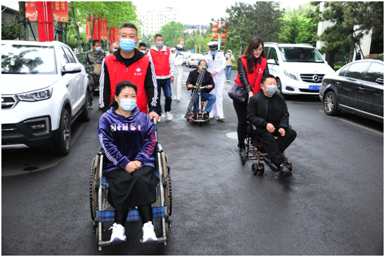(青島福彩志愿者、海軍太湖艦官兵協(xié)助殘障人士前往奧帆中心)