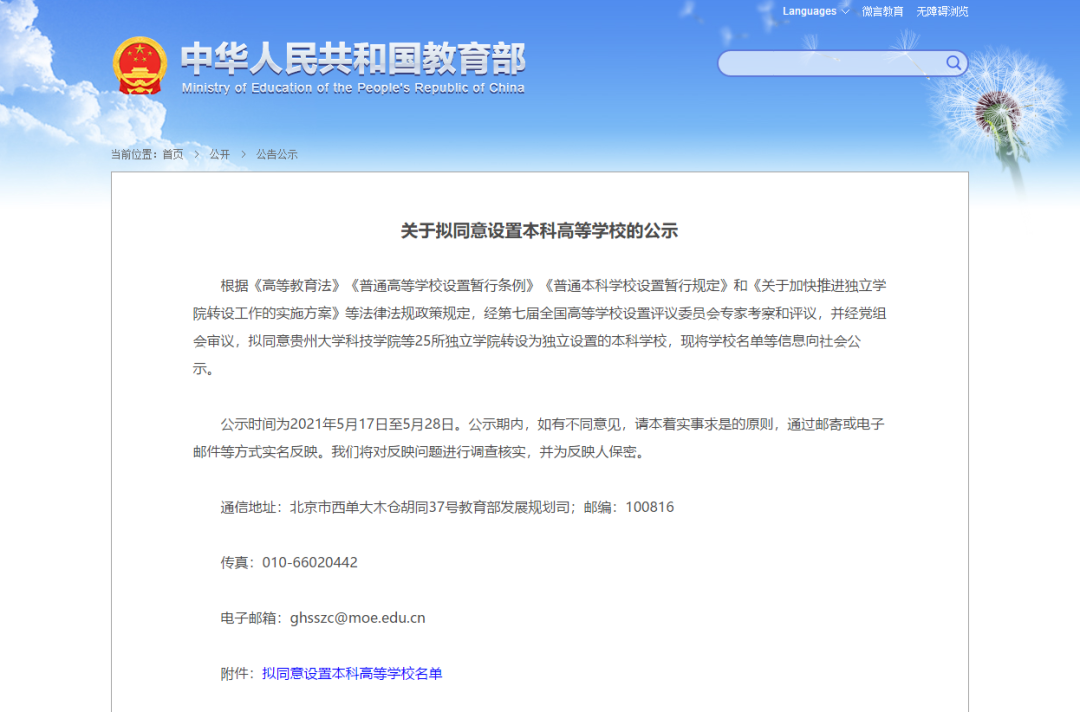 《關于擬同意設置本科高等學校的公示》,