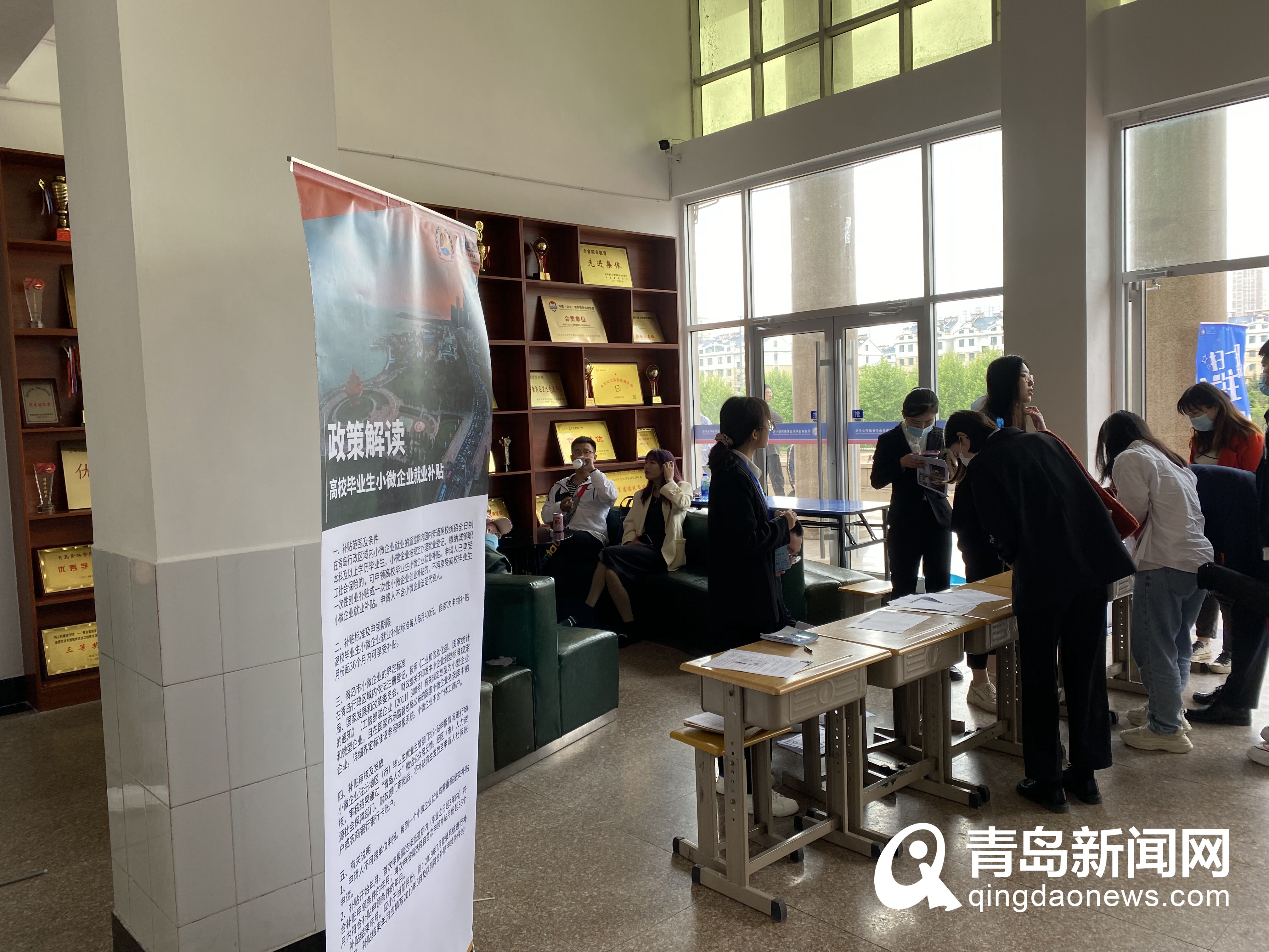 市南區(qū)人社局制作了人才政策解讀單頁(yè)向?qū)W生現(xiàn)場(chǎng)發(fā)放,同時(shí)設(shè)置了政策解讀宣傳展架,吸引眾多畢業(yè)生前來(lái)咨詢。兩所高校的就業(yè)服務(wù)志愿者也積極參與雙選會(huì)的籌備工作,并作為大學(xué)生就業(yè)政策義務(wù)宣講員在招聘會(huì)現(xiàn)場(chǎng)為同學(xué)們答疑解惑,認(rèn)真為大家講解各項(xiàng)補(bǔ)貼政策,起到了很好的橋梁作用。“優(yōu)企助力優(yōu)才騰飛”,市南人社局將始終秉承人才為先的工作理念,將招才引才留才用才工作推向深入。