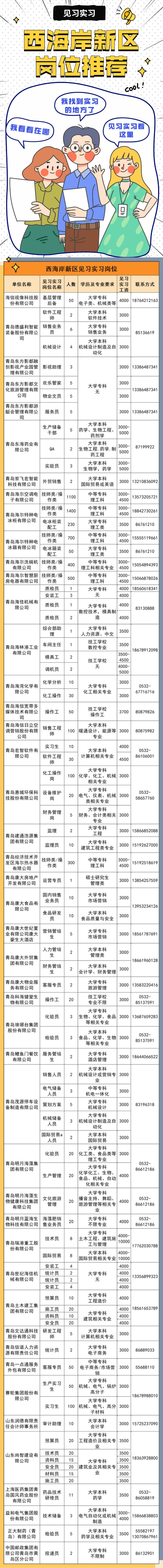 西海岸新區(qū)見習實習崗位推薦來嘍~