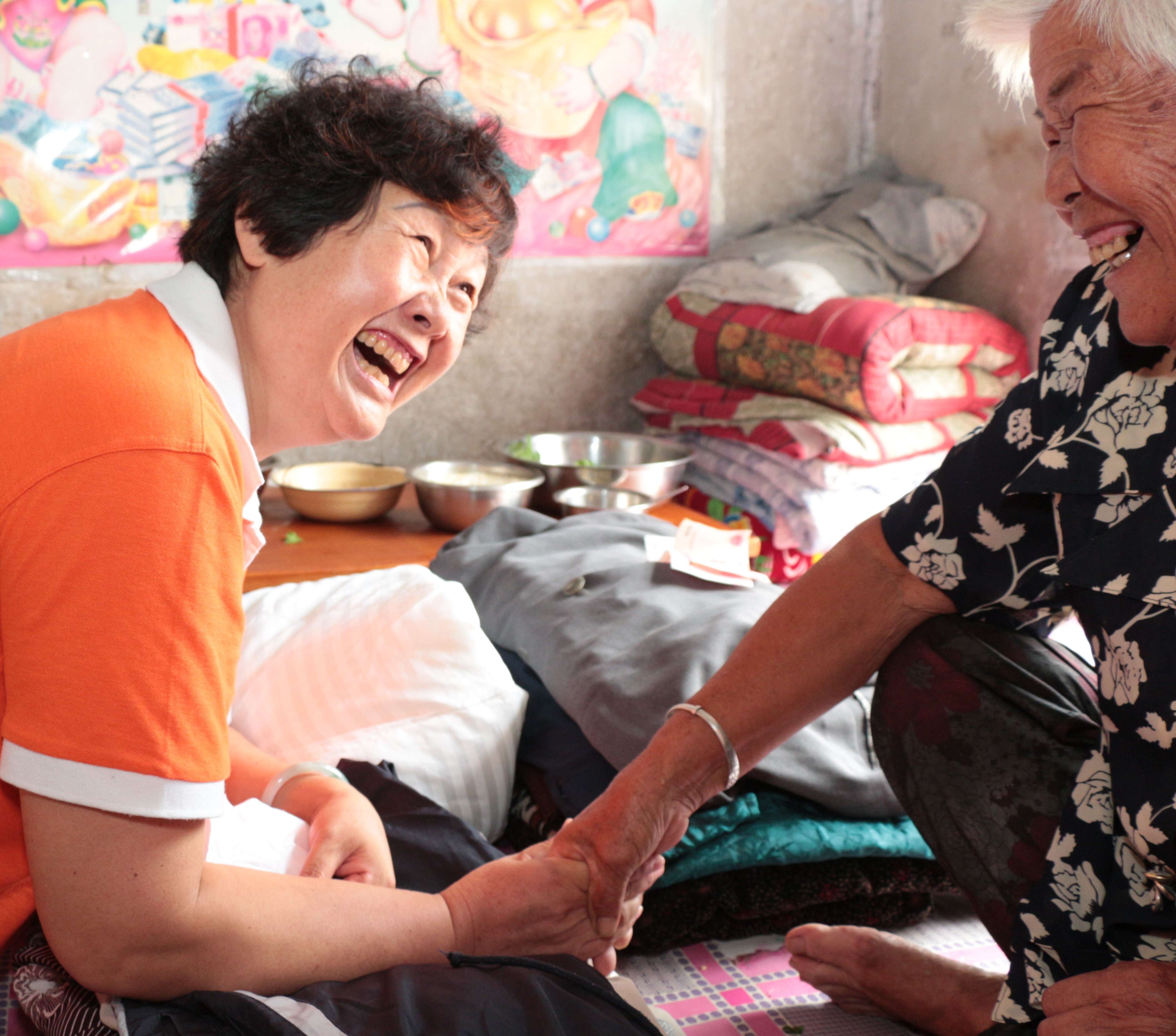 2006年冬天去萊西送溫暖,老遠就看到一位老太太站在村頭,又瘦又小,穿著一件小破襖,凍得直打哆嗦。她聽說上面要來人,大清早就出來了。她的兒子62歲,肢殘加智障,原本83歲的老人該享福了,卻成了這個家的支柱。我記得量體選衣時有一套銀灰色的羊絨衫,尺寸適合老太太,就說給這個老人吧。當時在場的志愿者說:笑姐,一個80多歲的農(nóng)村老太太,能穿出去嗎?我說能,一定能,很可能是她一輩子都沒見過的。來到老人家里,家徒四壁,房門都是用玉米秸綁的,炕上冰涼,只有一床破被,兒子躺在炕上。當我們將送去的兩床新被給她兒子蓋上,老人換上羊絨衫后,頓時變了一個人。她笑得熱淚盈眶,在場的9個大學生志愿者都哭了。